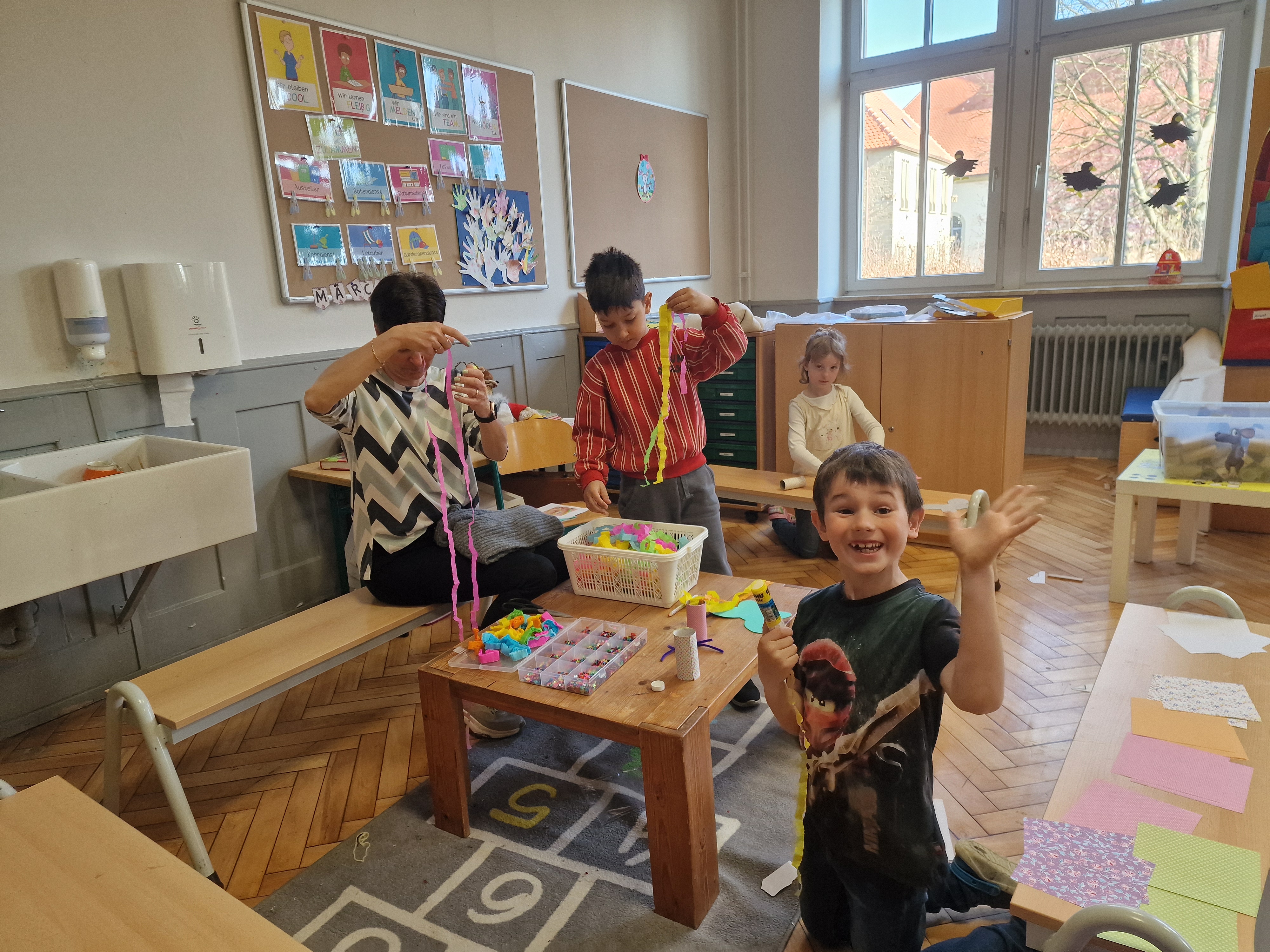 Anschließend konnten sich zunächst die Erst- und Zweitklässler an vier verschiedenen Bastelstationen kreativ austoben.