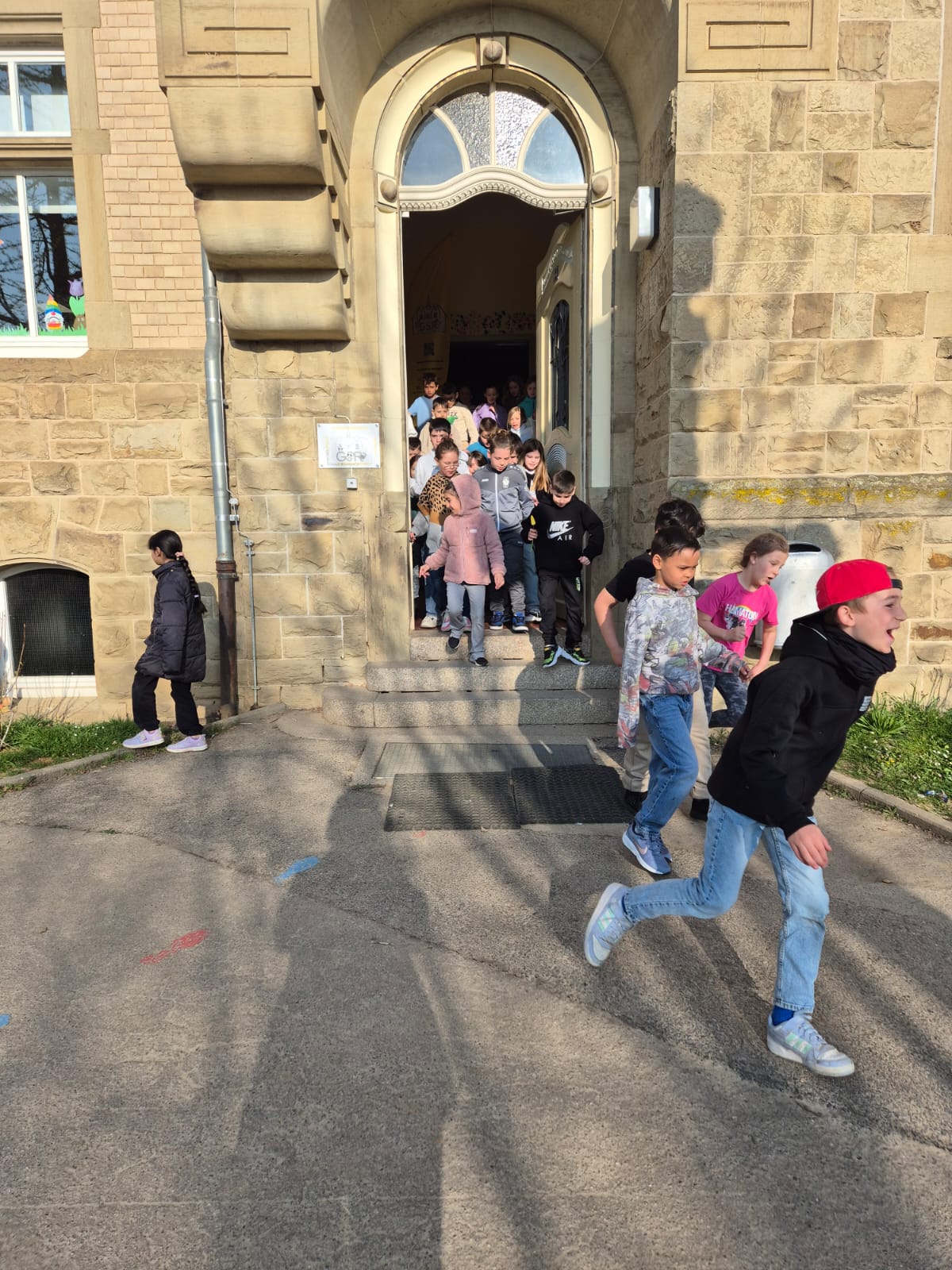 Los ging es mit einer spannenden Suche auf dem Pausenhof – denn dort waren für alle Kinder ihre selbstgebastelte Osternester versteckt, die mit Schokolade, bunten Ostereiern und einer Überraschung gefüllt waren. Die Freude war groß, als die Kinder ihre eigenen Nester entdeckten.