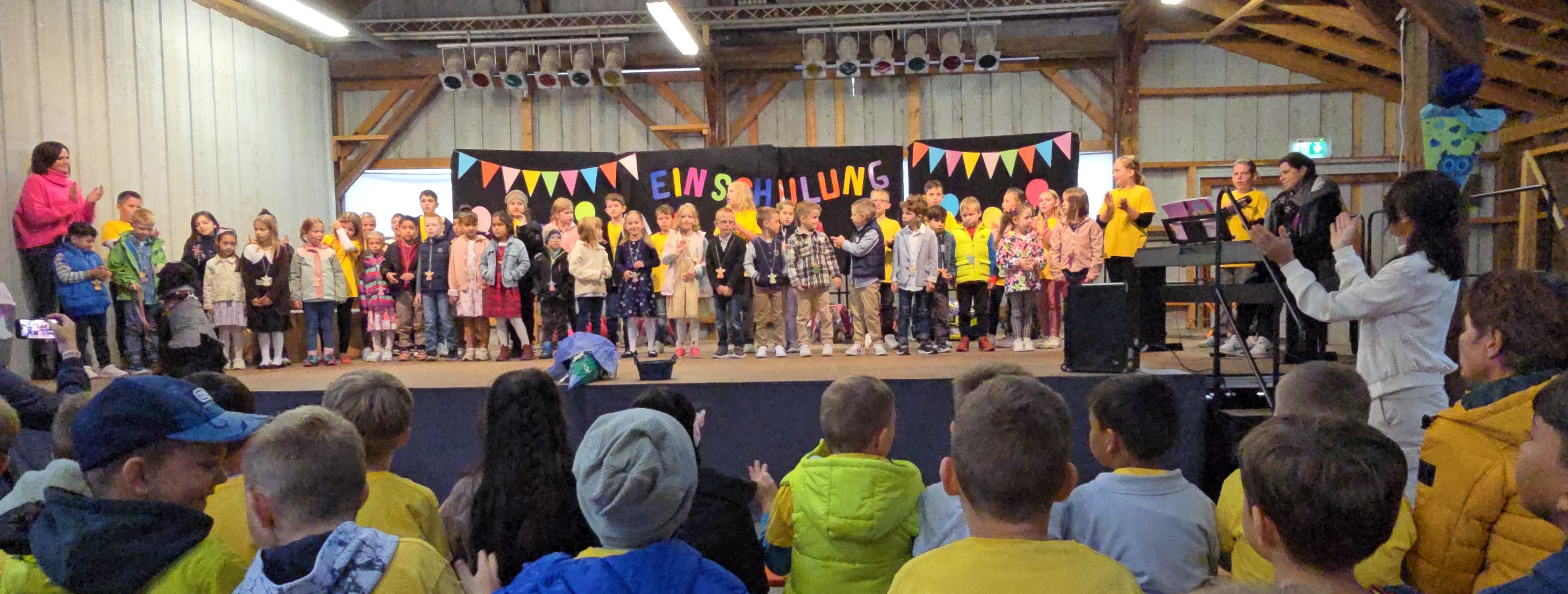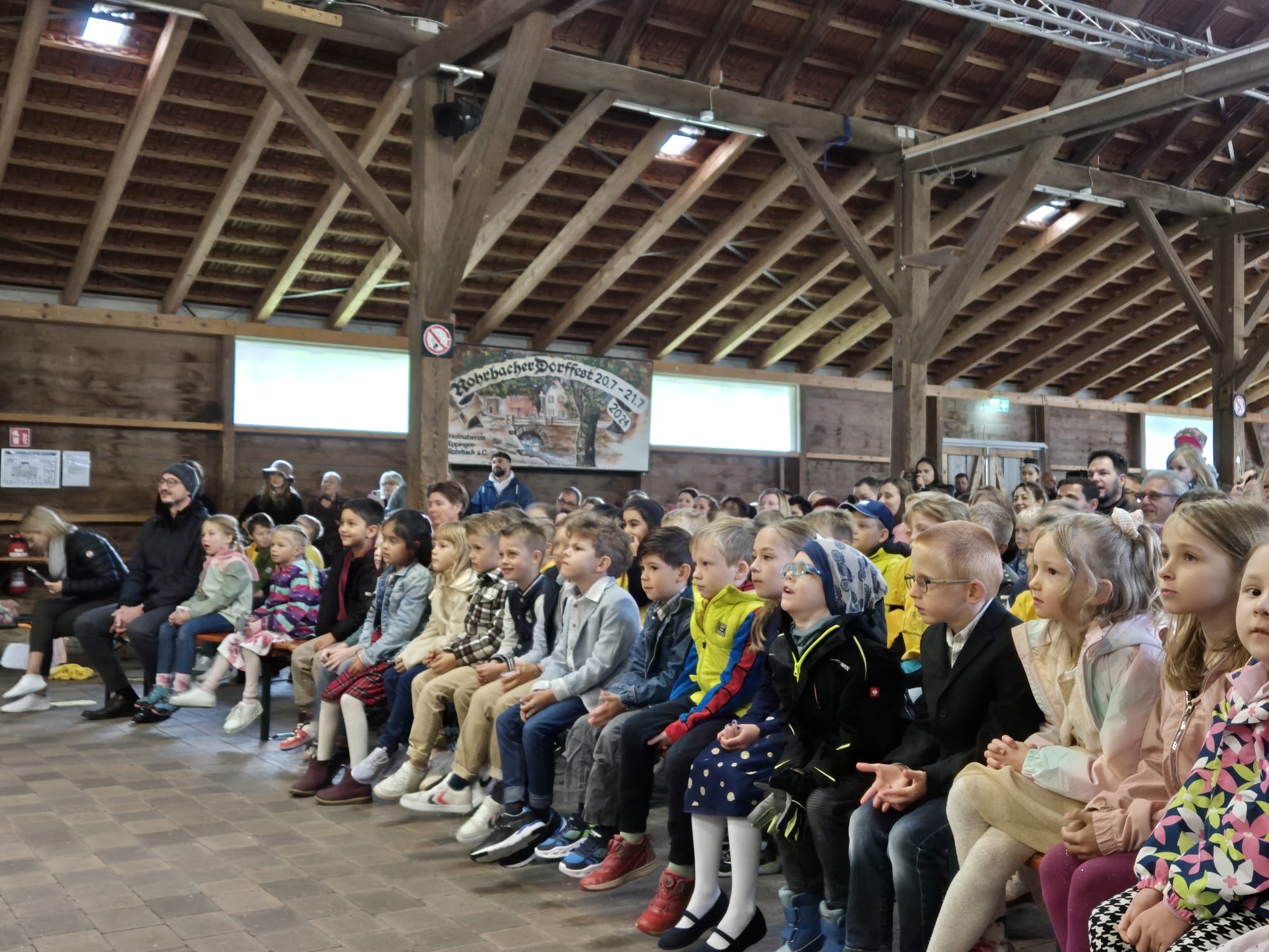 Am letzten Freitagmorgen feierte die Grundschule Rohrbach die Einschulung für die 24 neuen Erstklässler. Aufgrund des Wetters fand die Feier in diesem Jahr in der Dreschhalle statt. Nach einem Eröffnungslied mit Sologesang begrüßte die Schulleiterin Frau Gern die aufgeregten Kinder, Eltern und viele weitere Gäste, bevor die Viertklässler wie in jedem Jahr ein Theaterstück aufführten.