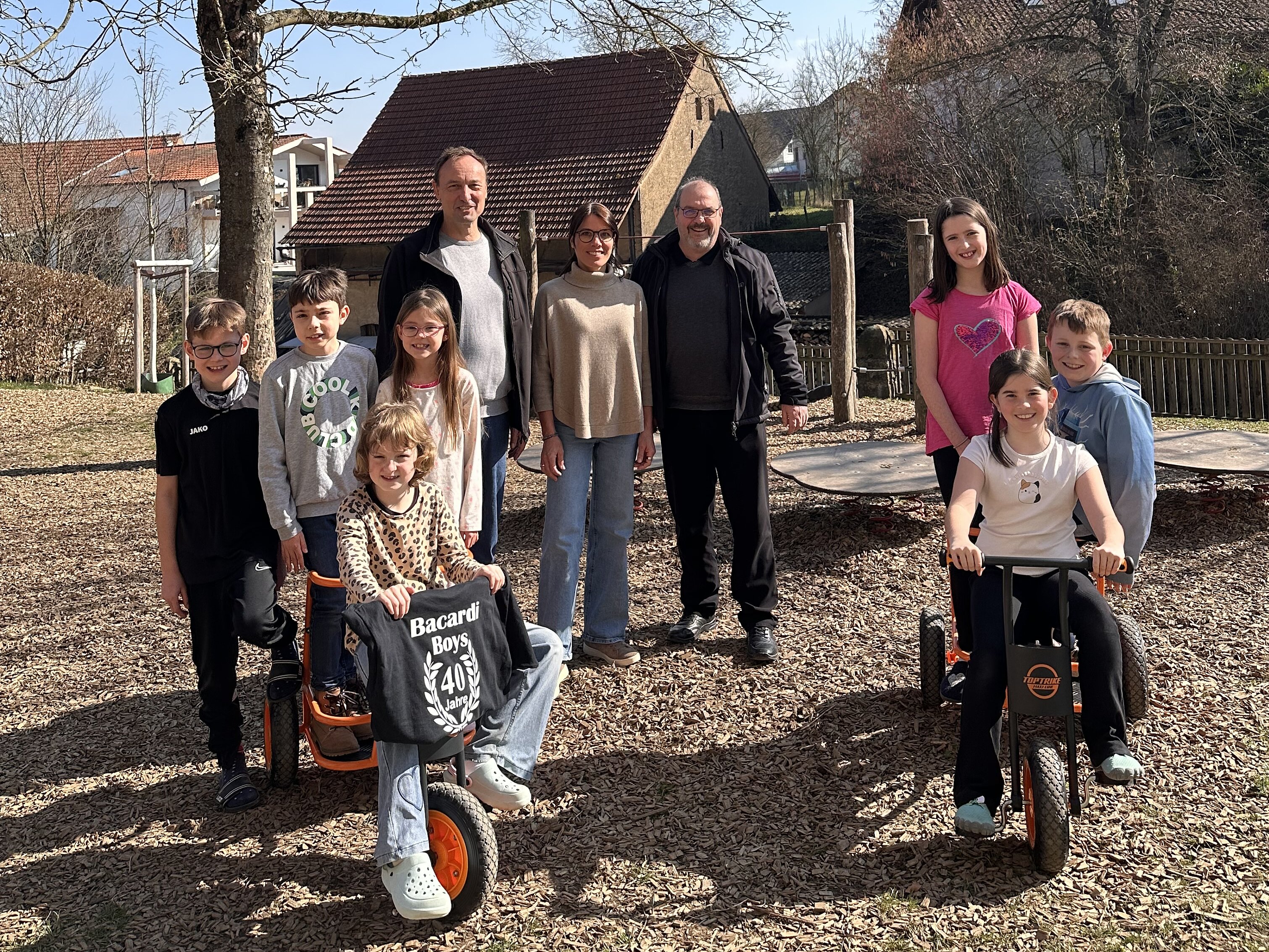 Über eine schöne Erweiterung ihres Fuhrparks darf sich die Grundschule Rohrbach freuen: Dank einer großzügigen Spende konnten zwei neue Fahrzeuge für den Schulhof angeschafft werden. Möglich gemacht haben dies die „Bacardi Boys“. Anlässlich ihres 40-jährigen Jubiläums traf sich die Gruppe bei der vergangenen Rohrbacher Kerwe zu einem Revival und betrieb dort einen eigenen Stand. Der Erlös war von Anfang an für einen guten Zweck bestimmt und wurde schließlich der Grundschule Rohrbach gespendet. Die neuen Fahrzeuge sind bereits auf dem Schulhof im Einsatz und werden von den Kindern mit großer Begeisterung genutzt. Die Schulgemeinschaft bedankt sich herzlich bei den „Bacardi Boys“ für diese großzügige Unterstützung.