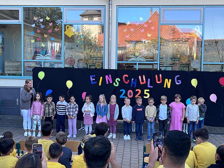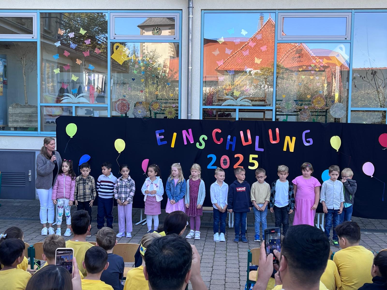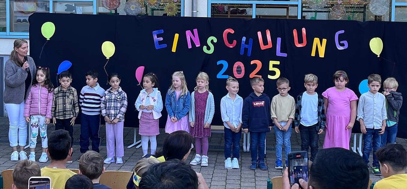 Am vergangenen Freitag durfte die Grundschule Rohrbach 16 neue Erstklässlerinnen und Erstklässler mit einer fröhlichen Einschulungsfeier auf dem Schulhof begrüßen. Nach einem schwungvollen Eröffnungslied hieß Schulleiterin Frau Gern die aufgeregten Kinder, ihre Eltern und zahlreiche Gäste herzlich willkommen. Wie jedes Jahr sorgten die Viertklässler mit einem kleinen Musical mit Liedern und Tänzen für gute Stimmung. In der Aufführung „Morgen geht die Schule los“ drehte sich alles um die Schulanfängerin Lisa, die vor ihrem ersten Schultag Bauchschmerzen vor lauter Aufregung hatte. Zufällig begegnet sie im Park ihrer neuen Lehrerin – und stellte erleichtert fest, dass auch diese sehr aufgeregt - vor allem aber sehr freundlich war. Zum Glück kennen die Rohrbacher Schulneulinge sowohl ihre Lehrerin als auch das Schulhaus schon gut, da die enge Zusammenarbeit mit dem Kindergarten einen sanften Übergang ermöglicht. Nach dem Musical wurden alle vorgestellt, die an der Grundschule Rohrbach arbeiten um den Kindern wie Eltern zu zeigen: Hier sind die Kleinen in guten Händen. Ein weiterer Programmpunkt war der Tanz der Mädchen aus den Klassen 2 und 3, bevor die Erstklässler einen ganz besonderen Begleiter für ihren Start erhielten: Ihre Schutzengel aus Holz, liebevoll bemalt und von den Paten aus der vierten Klasse überreicht. Diese hatten die