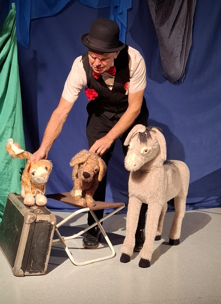 Ein paar Kinder durften selbst Teil der Aufführung werden und wurden von Herrn Messner geschickt ins Geschehen eingebunden. Die lebendige Inszenierung und die abwechslungsreiche Darstellungsweise mit liebevoll gestalteten Kulissen und Requisiten machten das Grimm’sche Märchen zu einem kurzweiligen Vergnügen für Groß und Klein.
