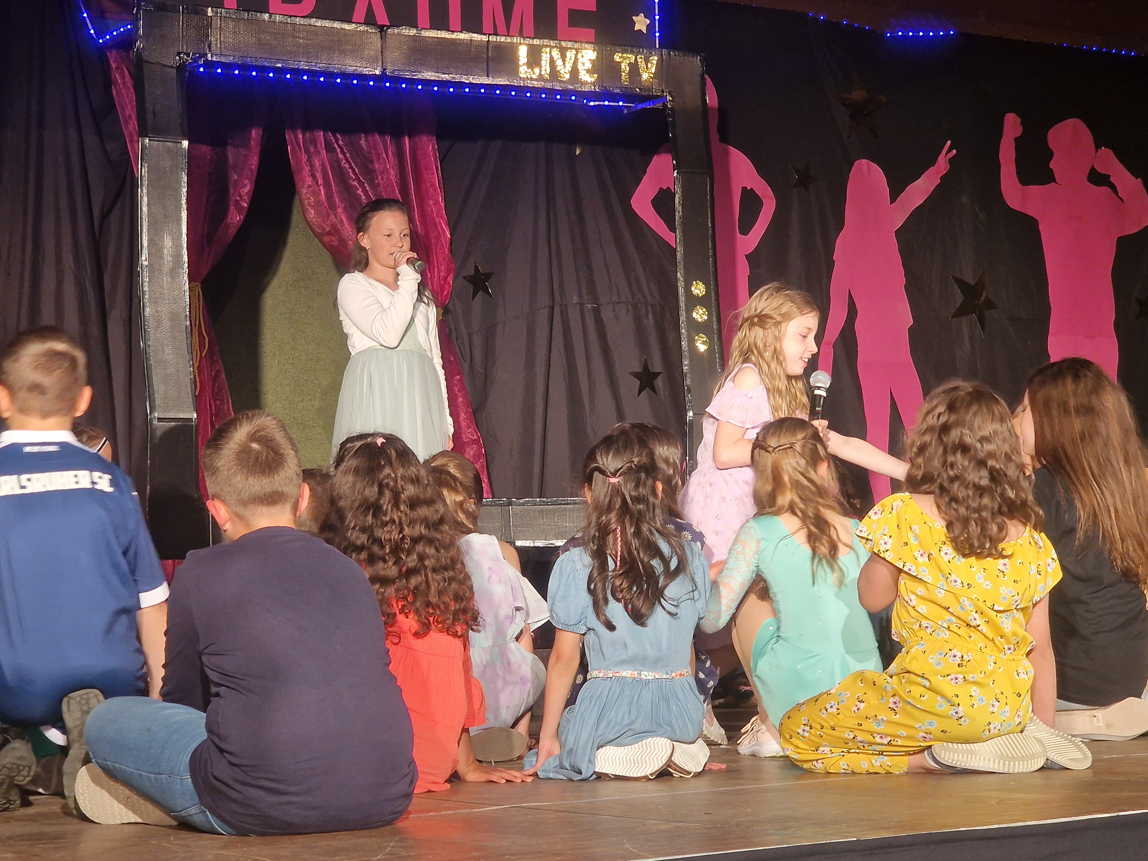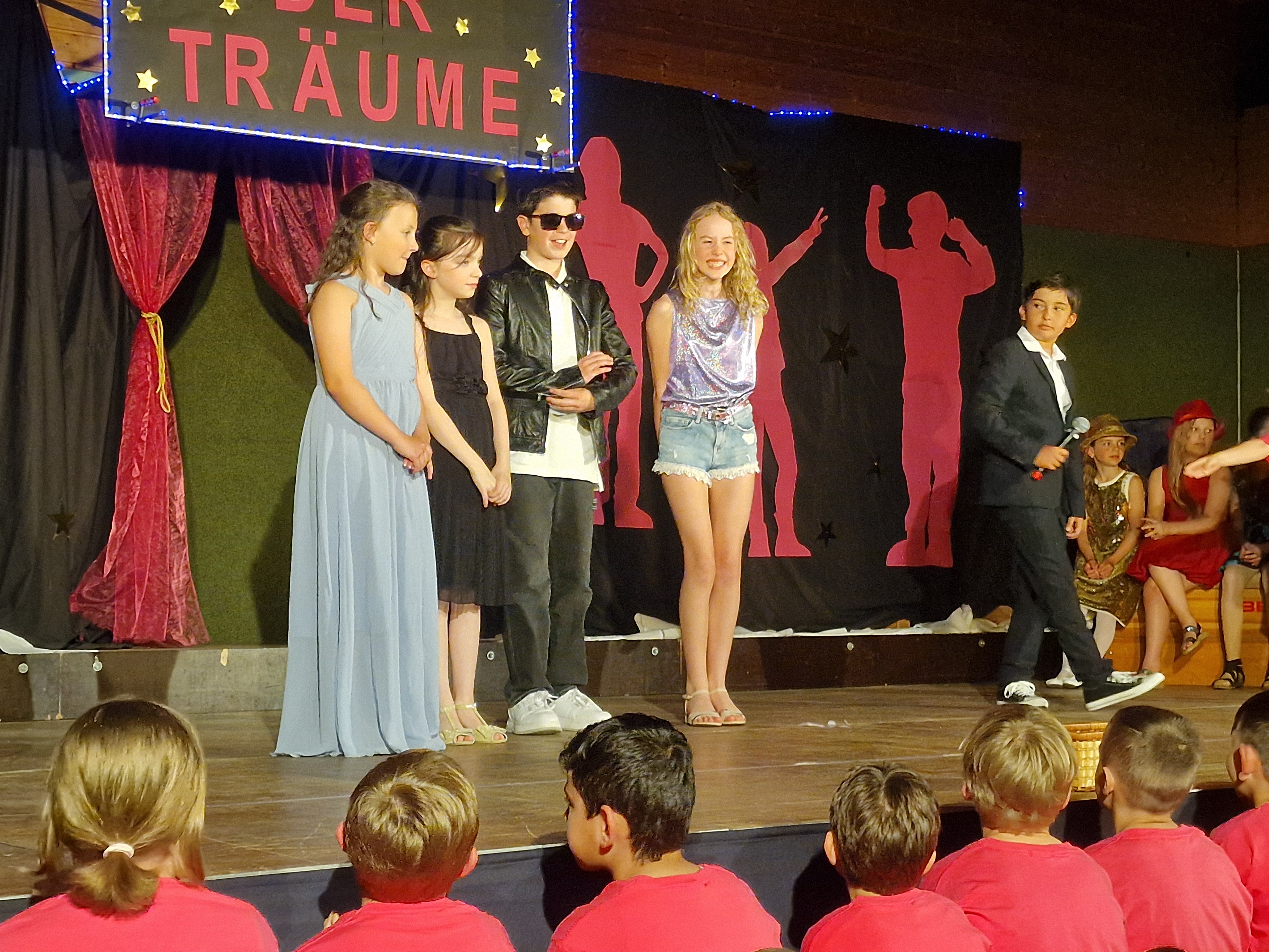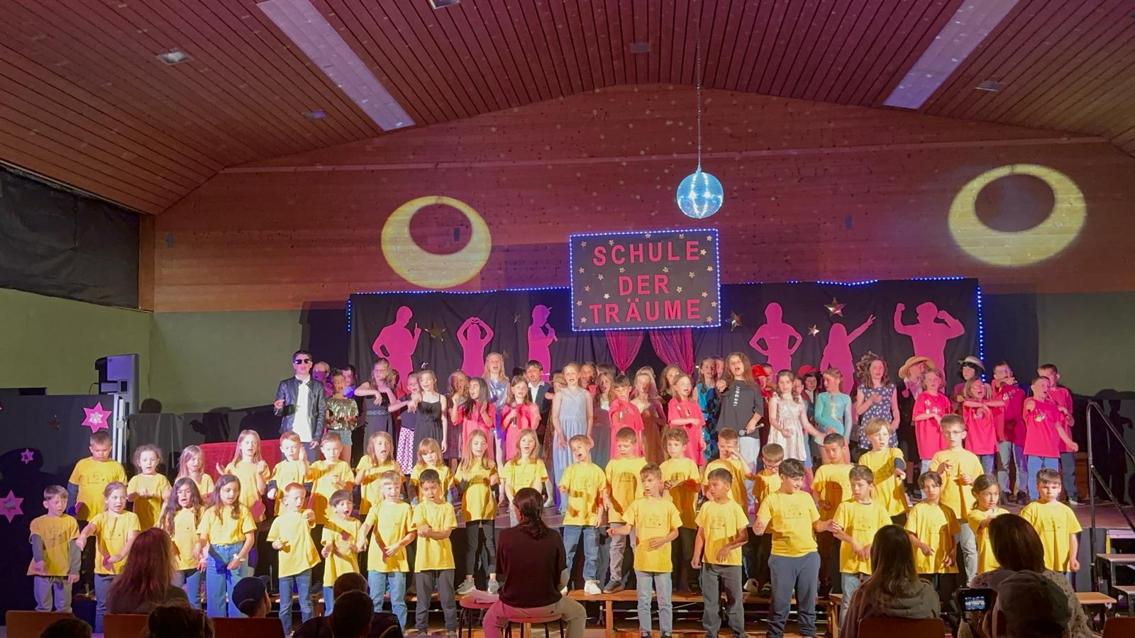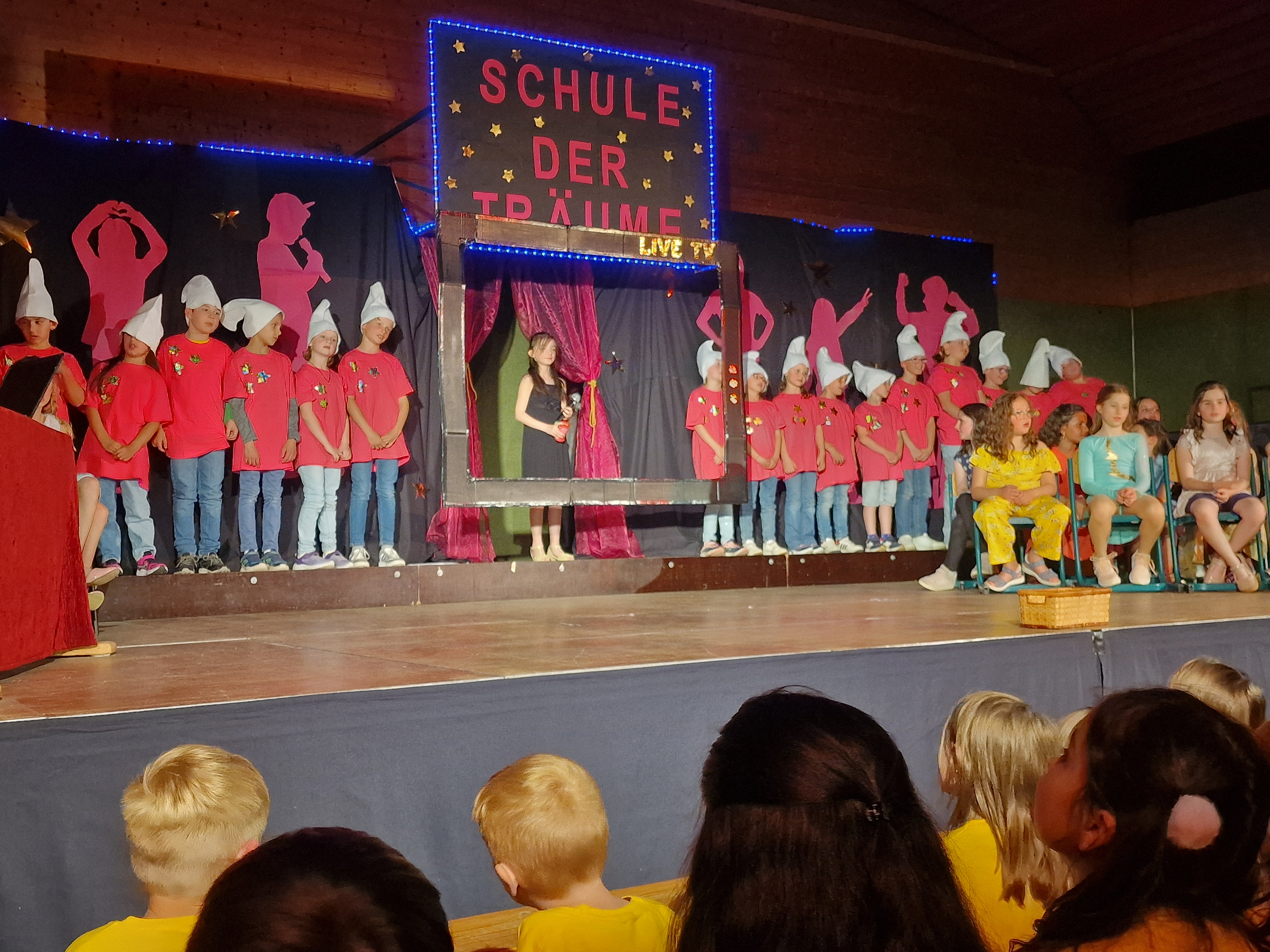 Jahrzehnte. Wieder mit Live-Musik vom Kollegium begleitet und von der Schulleiterin dirigiert, präsentierten sie ein Medley aus ausgewählten Liedern vergangener Musicals und sorgten damit für Gänsehautmomente – nicht nur bei den Lehrkräften, sondern auch bei den zahlreich erschienenen Eltern, Großeltern und Freunden der Schule. Frau Gern freute sich sehr über die vielen Ehemaligen, die sich für dieses Projekt die Zeit genommen haben und schöne Erinnerungen an die Grundschulzeit aufleben ließen.