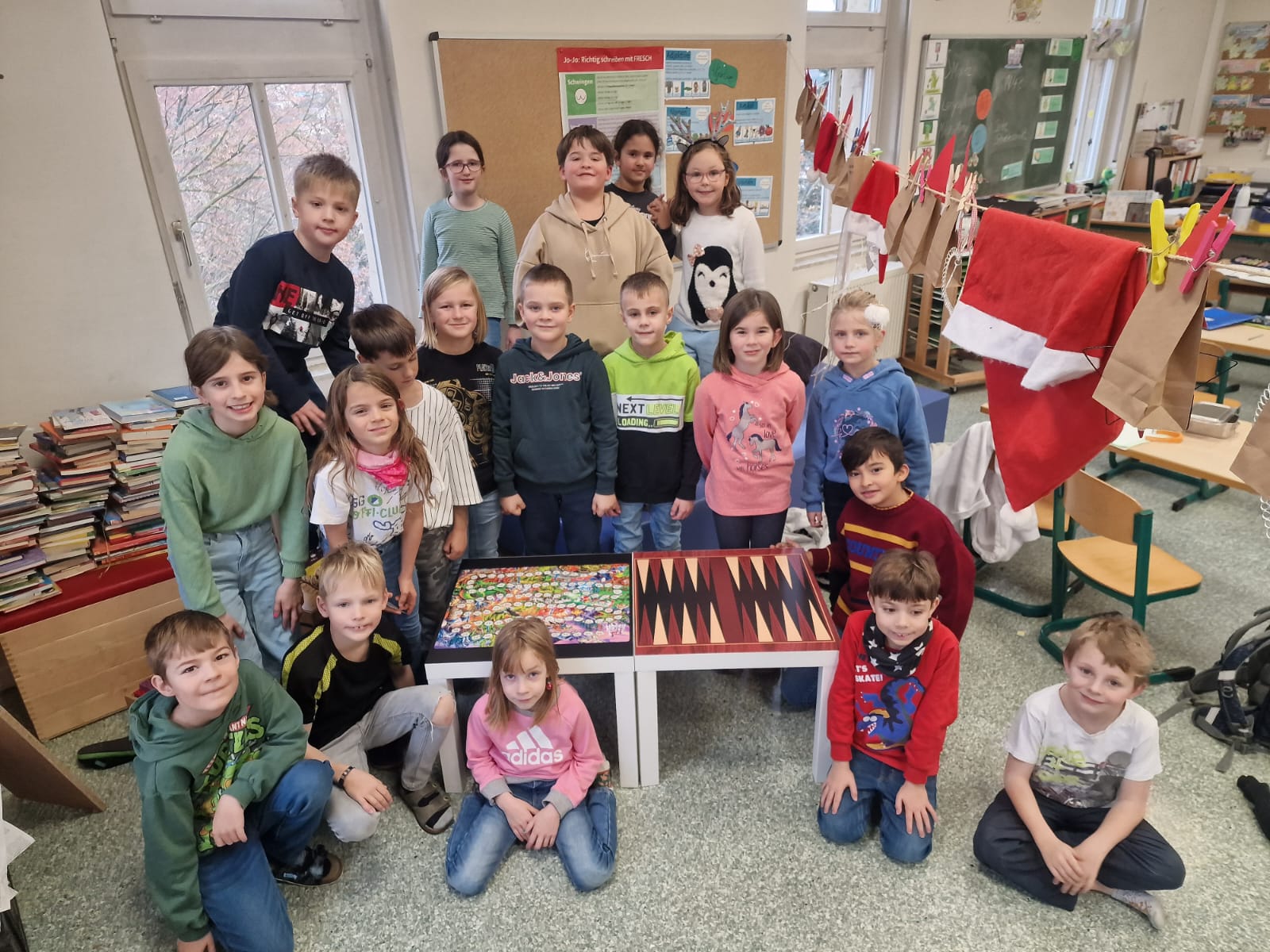 Die Rohrbacher Grundschulkinder dürfen sich über eine tolle Spende freuen: Jeder Klasse wurde vom Förderverein zwei Tische gesponsert, auf welchen sie nun verschiedene Brettspiele wie Mühle, Mensch-ärger-dich-nicht, Backgammon, Schach und Fang-den-Hut spielen können. Die Klebefolien für die Tische wurden von Pascal Mühlich (Firma Müller klebt) hergestellt und der Schule gespendet. Die zeitlosen Spieleklassiker finden immer wieder großen Anklang bei Kindern. Sie sorgen nicht nur für Spaß und Abwechslung in den Pausen, sondern auch für ein gutes soziales Miteinander. Vielen herzlichen Dank hierfür!